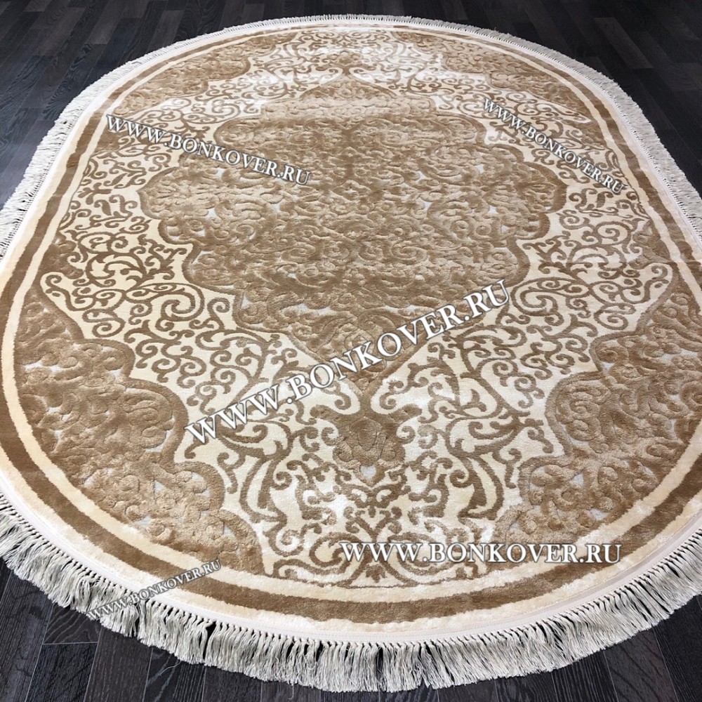 Ковер для Гостиной Бельгия Вискоза Арт 0493 Gold Овальный станет идеальным дополнением интерьера, оформленного в современном или классическом стиле. Мягкое, но прочное, ковровое покрытие обеспечивает тепло- и шумоизоляцию, отличается длительным периодом эксплуатации, пожаробезопасностью, экологичностью и высокой износостойкостью, является отличным барьером от повышенной влажности в помещении и утеплителем для холодного пола. Благодаря качеству материалов, ковер не деформируется, сохраняет первоначальный вид под тяжестью предметов мебели. За его поверхностью легко ухаживать.
