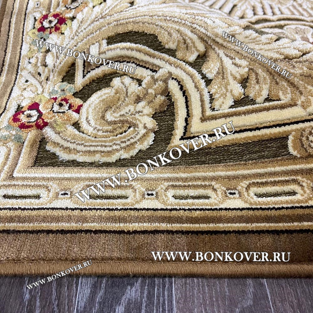 Ковер для Гостиной из Артшелка Дизайн 03 Бежево-Коричневый станет блестящим дополнением интерьера, оформленного в современном или классическом стиле. Мягкое, но прочное, ковровое изделие обеспечивает тепло- и шумоизоляцию, отличается длительным периодом эксплуатации, надежностью, экологичностью и высокой износостойкостью, является отличной защитой от повышенной влажности в комнате и утеплителем для холодного пола. Благодаря качеству материалов, ковер не деформируется, сохраняет первоначальный вид под тяжестью предметов мебели. За его поверхностью легко ухаживать.