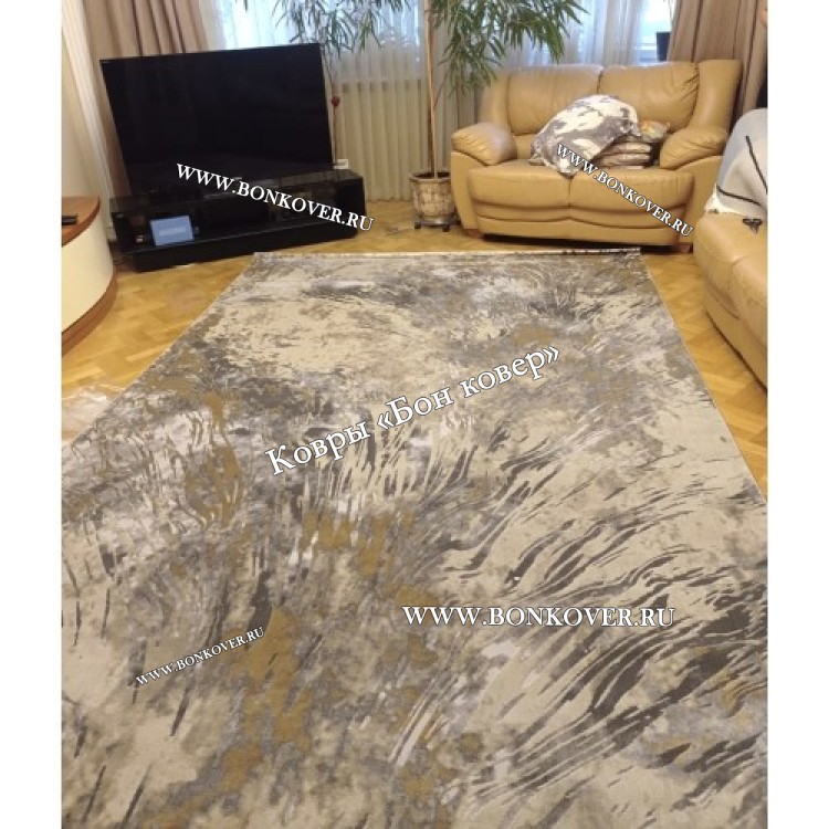Ковер Турция Для Гостиной Дизайн 98 Серый с Бежевым
