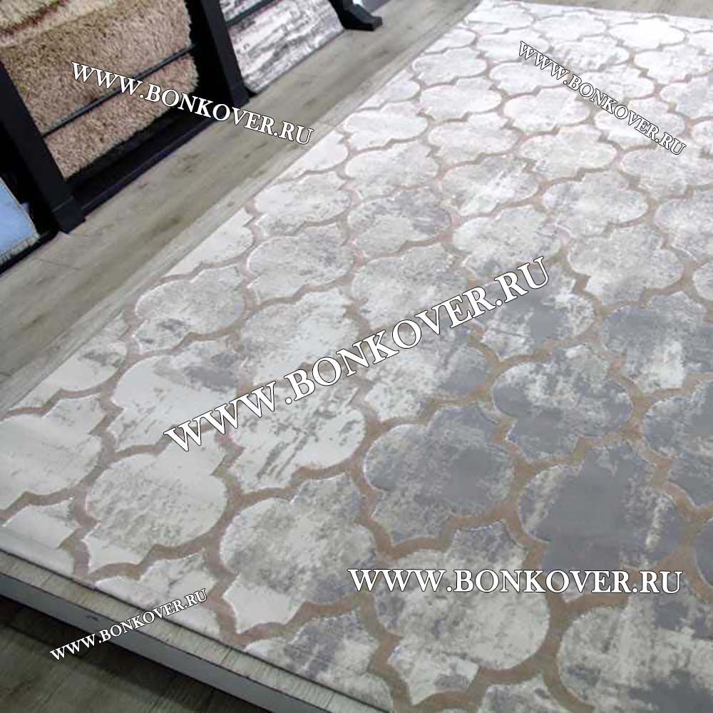 Красивый Ковер Турция Современный Дизайн 17 Серый с Бежевым наполняет интерьер жилого пространства теплом и уютом, гармонично сочетает в себе изящество и красоту. Он создан из экологически чистого сырья, комфортный и долговечный.