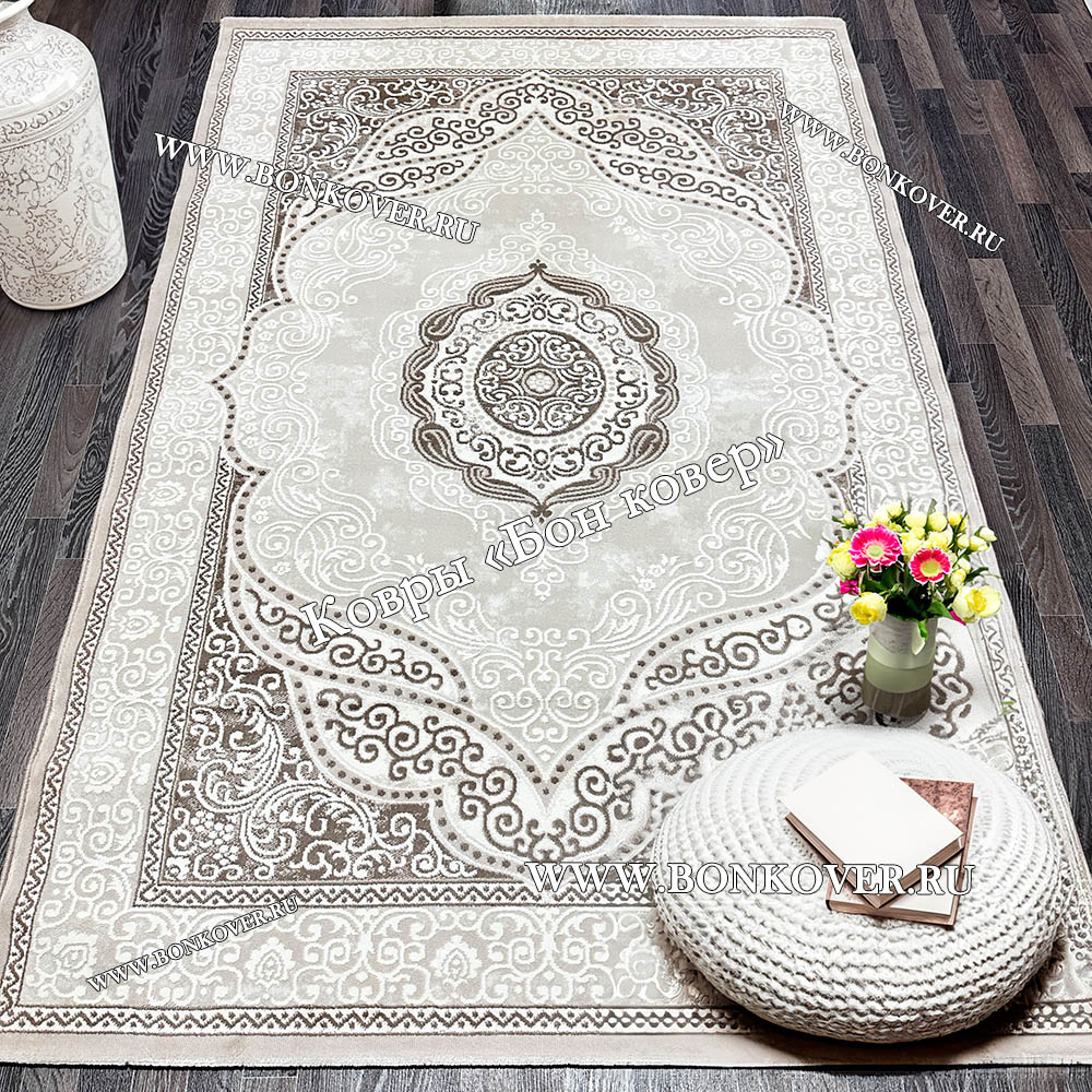 Изящный Ковер в гостиную дизайн 02 Белый наполняет интерьер комнаты теплом и уютом, гармонично сочетает в себе изящество и стиль. Он соткан из экологически чистого сырья, прочный и долговечный.