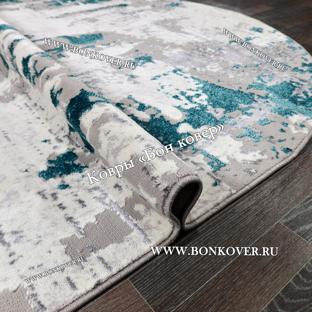 Элегантный Современный ковер для комнаты 02 Бирюзовый Овал наполняет интерьер комнаты теплом и уютом, гармонично сочетает в себе изящество и красоту. Он изготовлен из экологически чистого сырья, комфортный и долговечный.