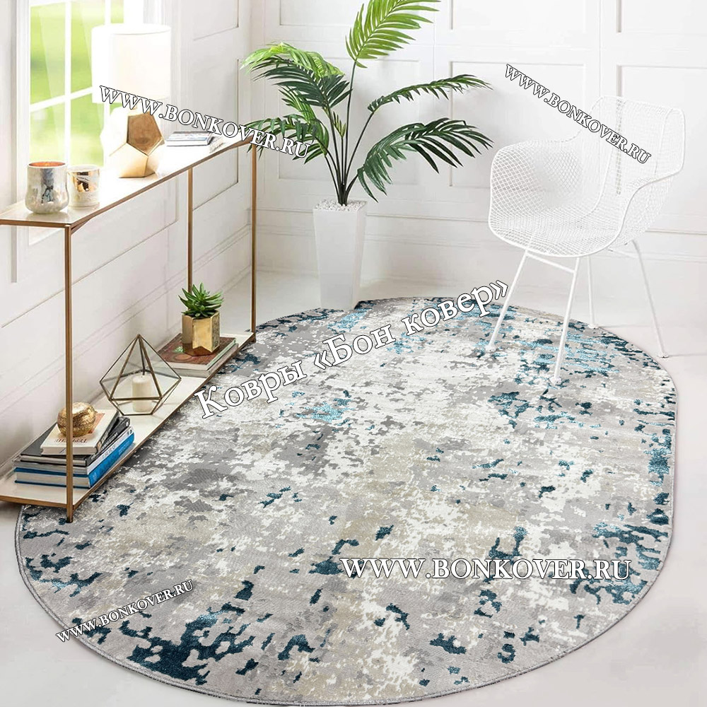 Шикарный Современный ковер для комнаты 05 Бирюзовый Овал наполняет интерьер квартиры теплом и уютом, гармонично сочетает в себе изящество и красоту. Он изготовлен из экологически чистого сырья, прочный и долговечный.