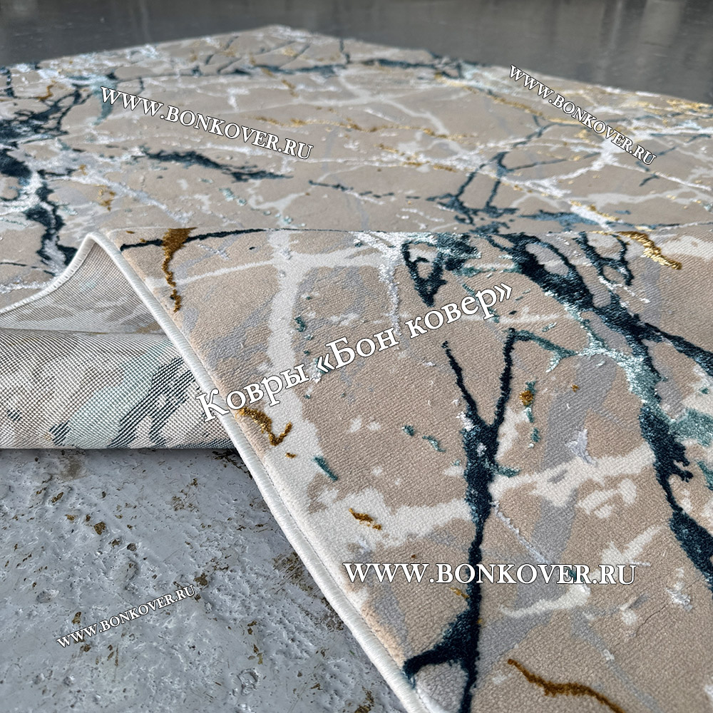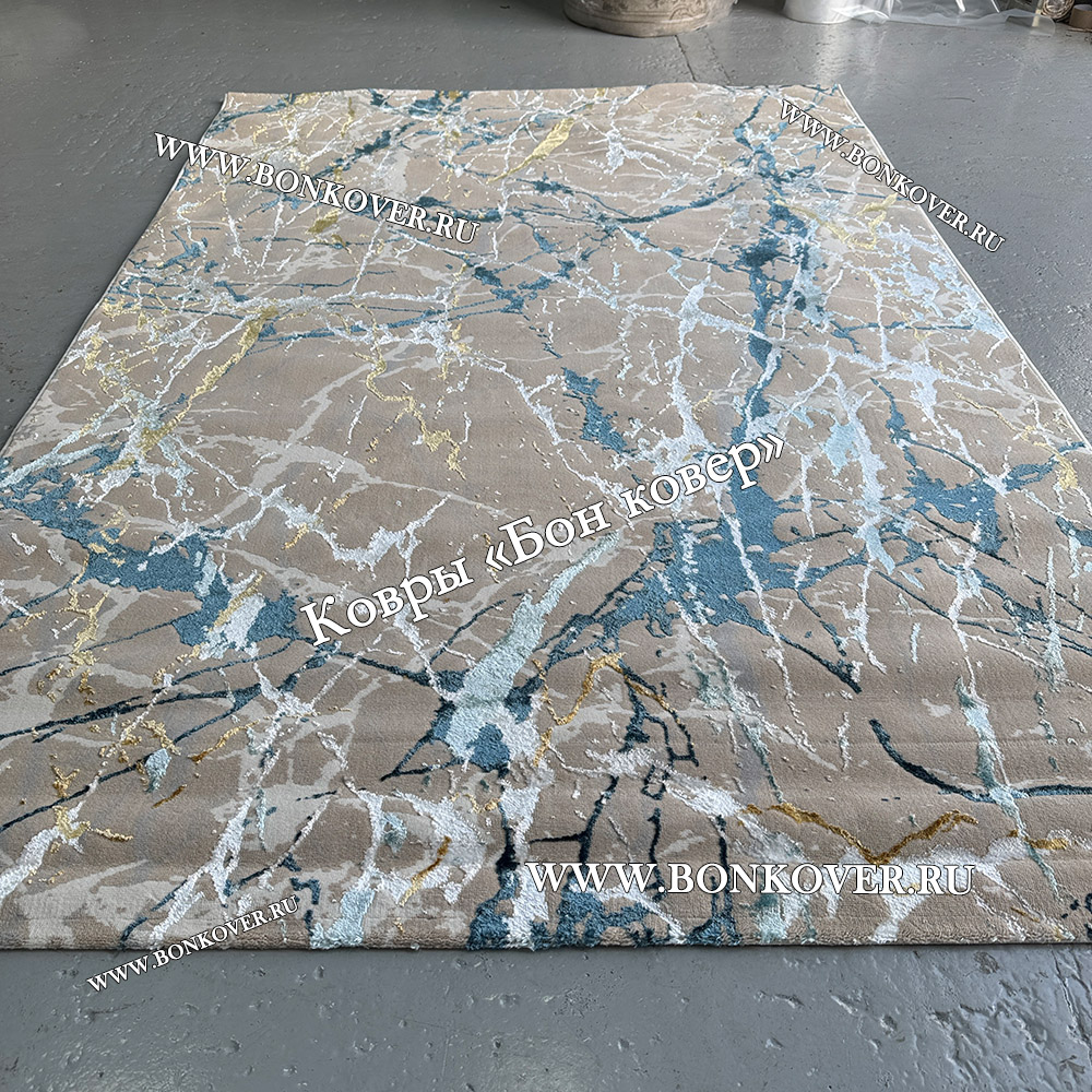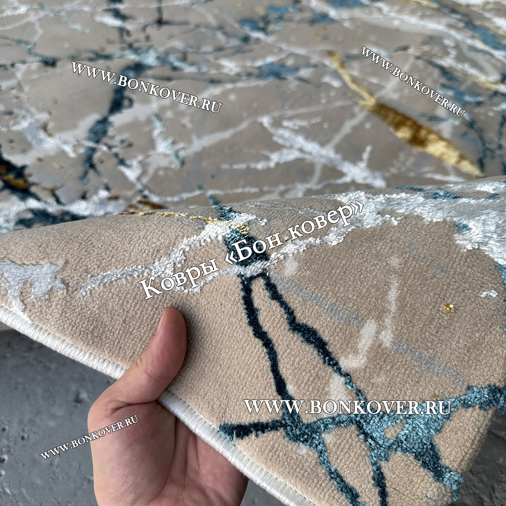 Турецкий Прямоугольный Ковер Бежевый с Золотистым дизайн 01