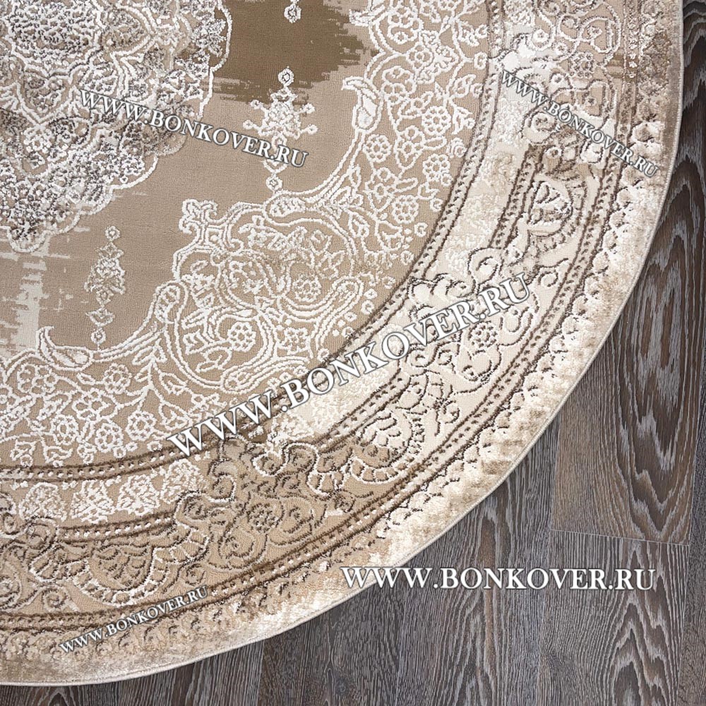 Турецкий Ковер Для Гостиной Дизайн 46 Бежево-Коричневый Круг