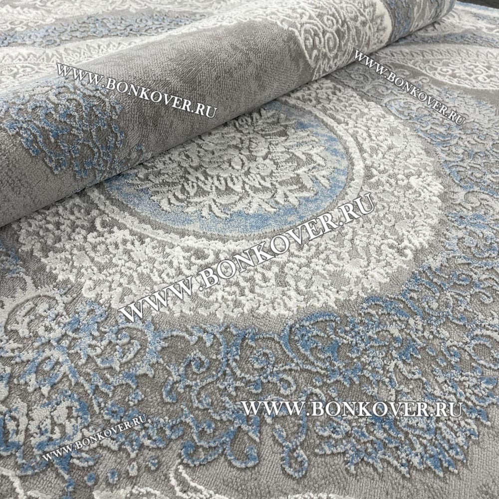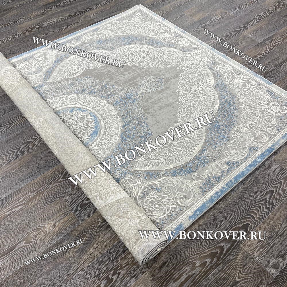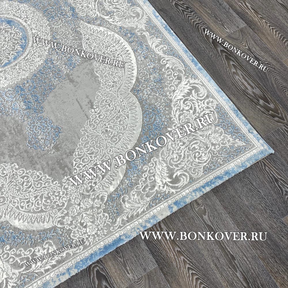 Изящный Турецкий Ковер Для Гостиной Дизайн 33 Синий с Серым Прямоугольный наполняет интерьер квартиры теплом и уютом, гармонично сочетает в себе изящество и красоту. Он выполнен из экологически чистого сырья, комфортный и долговечный.