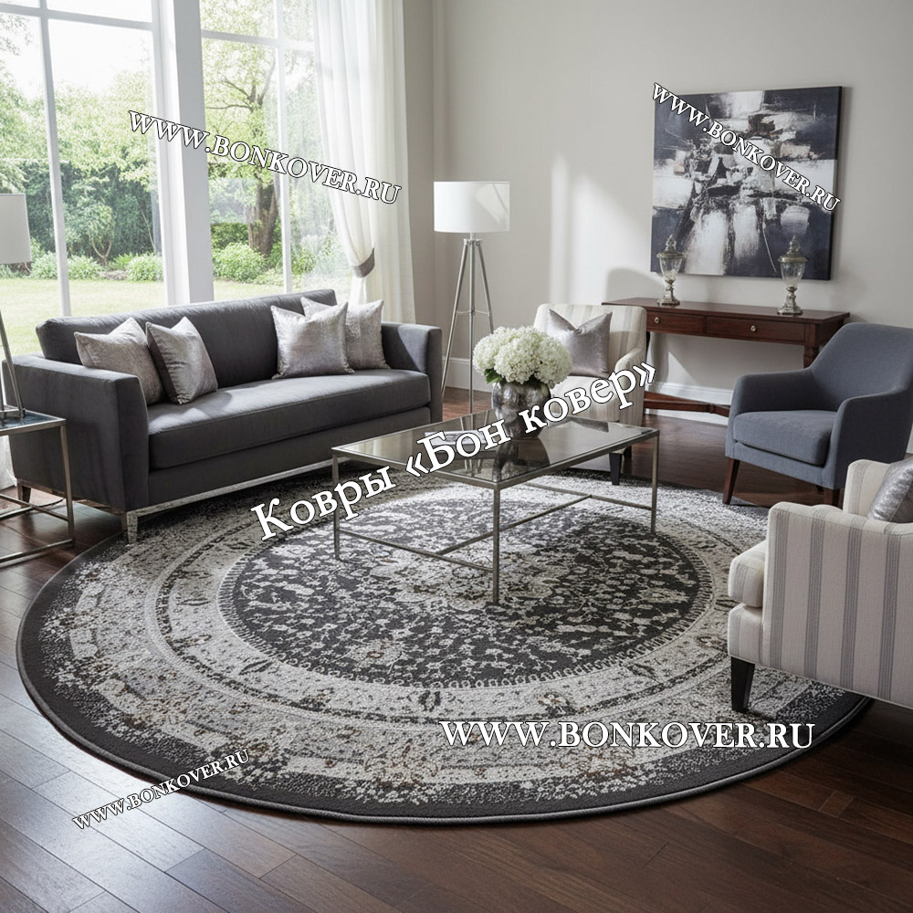 Турецкий Ковер Для гостиной New дизайн 371 Серый Круг станет идеальным преображением вашей комнаты, подчеркивая высокий статус семьи владельца.