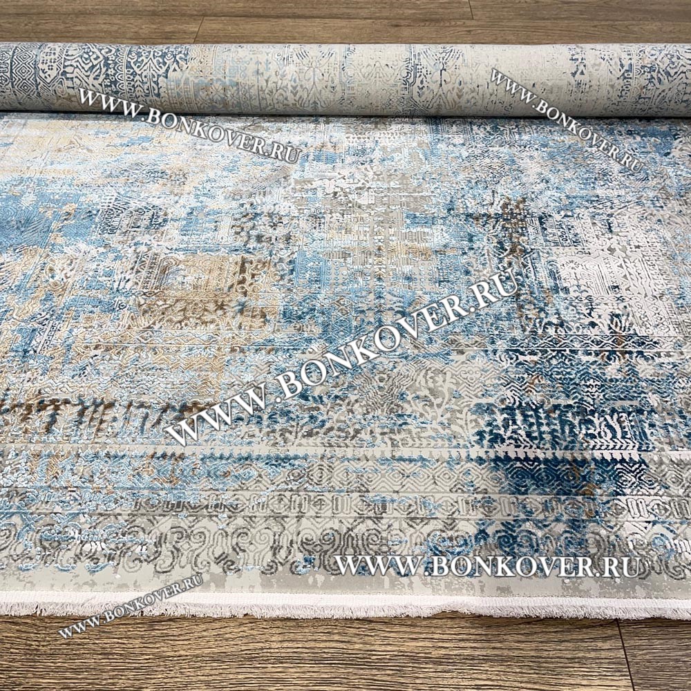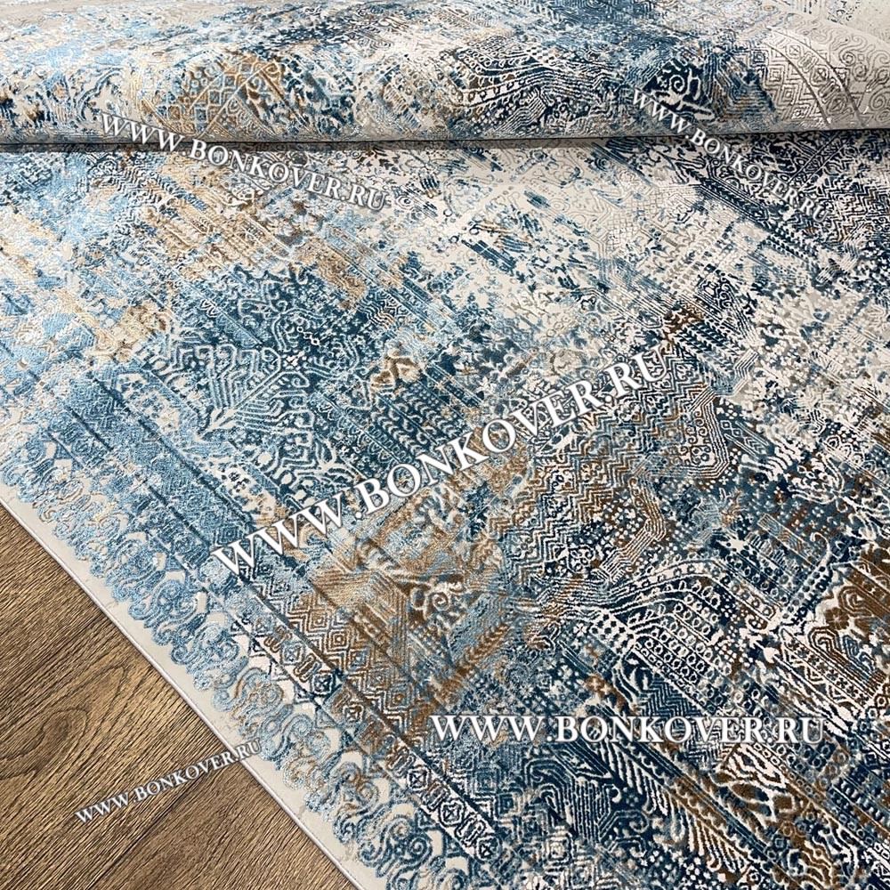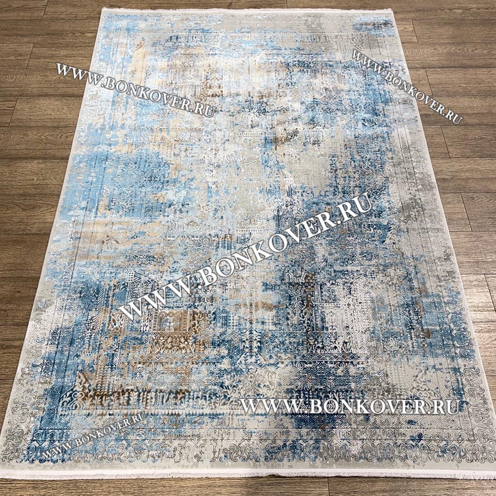 Высокоплотный Премиальный Ковер из вискозы Дизайн 02 Голубой с Бежевым станет стильным преображением жилого помещения, подчеркивая высокий статус семьи владельца.